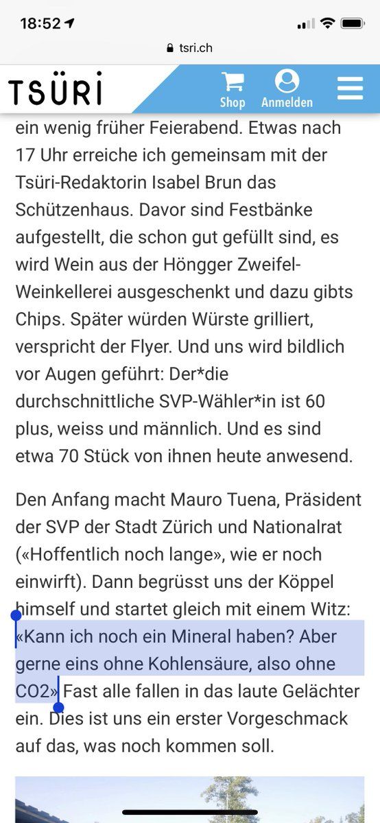 @SunilAschim > Dann begrüsst uns der Köppel himself und startet gleich mit einem Witz: «Kann ich noch ein Mineral haben? Aber gerne eins ohne Kohlensäure, also ohne CO2»